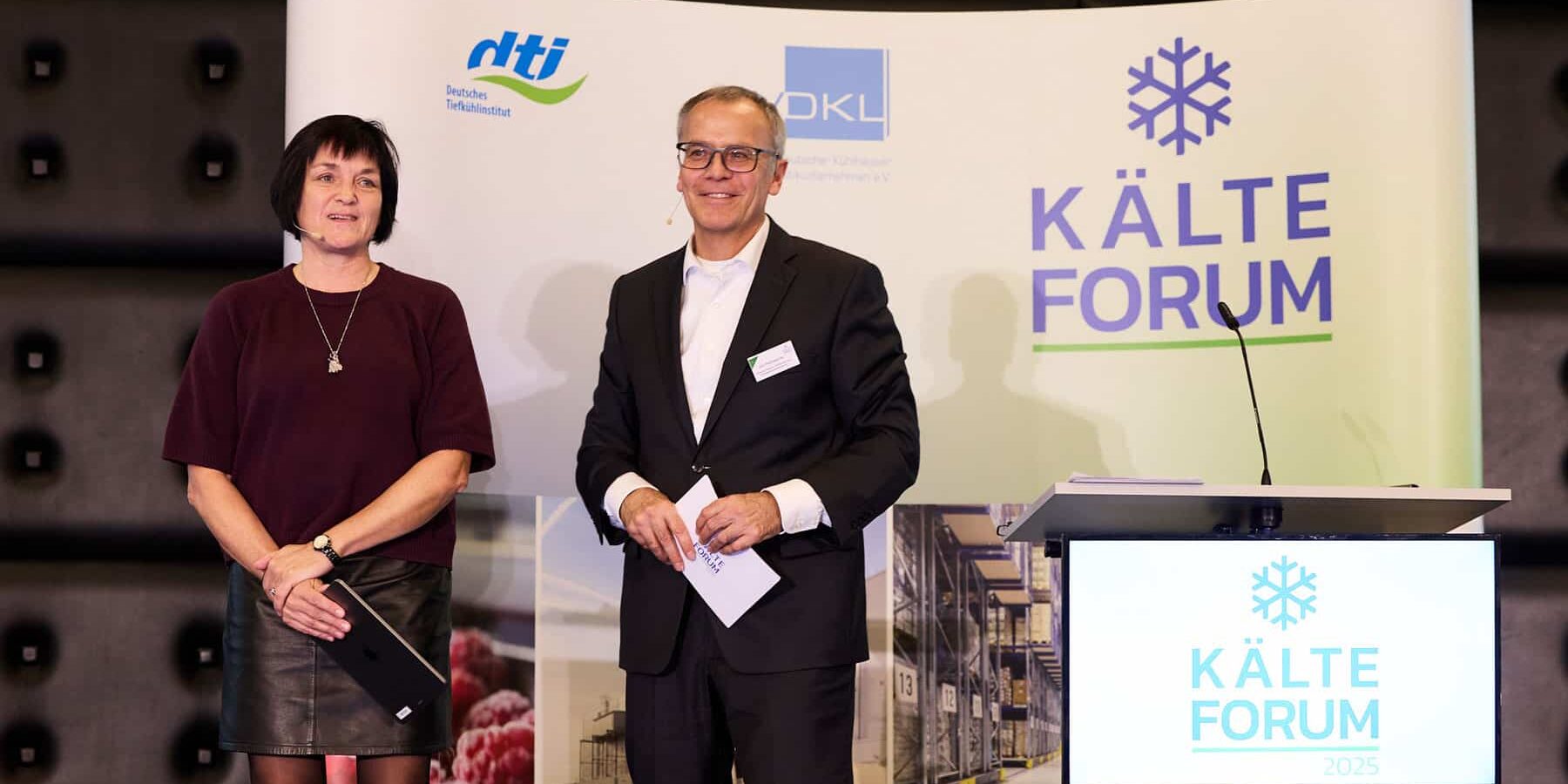 Die beiden Verbands-Geschäftsführer Dr. Sabine Eichner (dti) und Jan Peilnsteiner (VDKL) führten wieder souverän durch das Vortragsprogramm des Kälteforums.