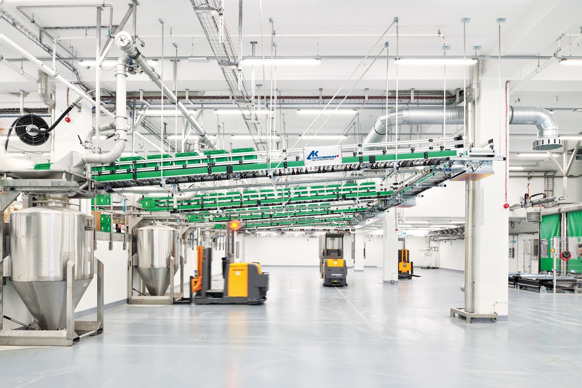 Um die Prozesse weiter zu optimieren und die Lieferzeiten zu verkürzen, entstand in Radolfzell eine neue Produktion, inklusive Lager, für die Mischung von Halbfabrikaten. Der Neubau, in dem die Klinkhammer Group die Intralogistik umgesetzt hat, umfasst die Mischerei mit einem angebundenen automatischen Hochregallager mit über 11 000 Stellplätzen für Rohstoffe, Verpackungen und Fertigwaren. Ebenfalls mittels Fördertechnik mit der Produktion verknüpft ist ein zweigassiges automatisches Behälterlager (AKL) mit rund 8800 Behältern. Es ist für Kleinstmengen und als Auftragszusammenführungspuffer für vorgemischte Chargen vorgesehen. Mit der fördertechnischen Anbindung von zehn Produktionsarbeitsplätzen, den Rohstoffsilos, dem Kühllager mit 300 Palettenstellplätzen und sechs Schwerkraftversandbahnen entstand eine der modernsten Produktionsanlagen für Trockenmischprodukte in Europa.