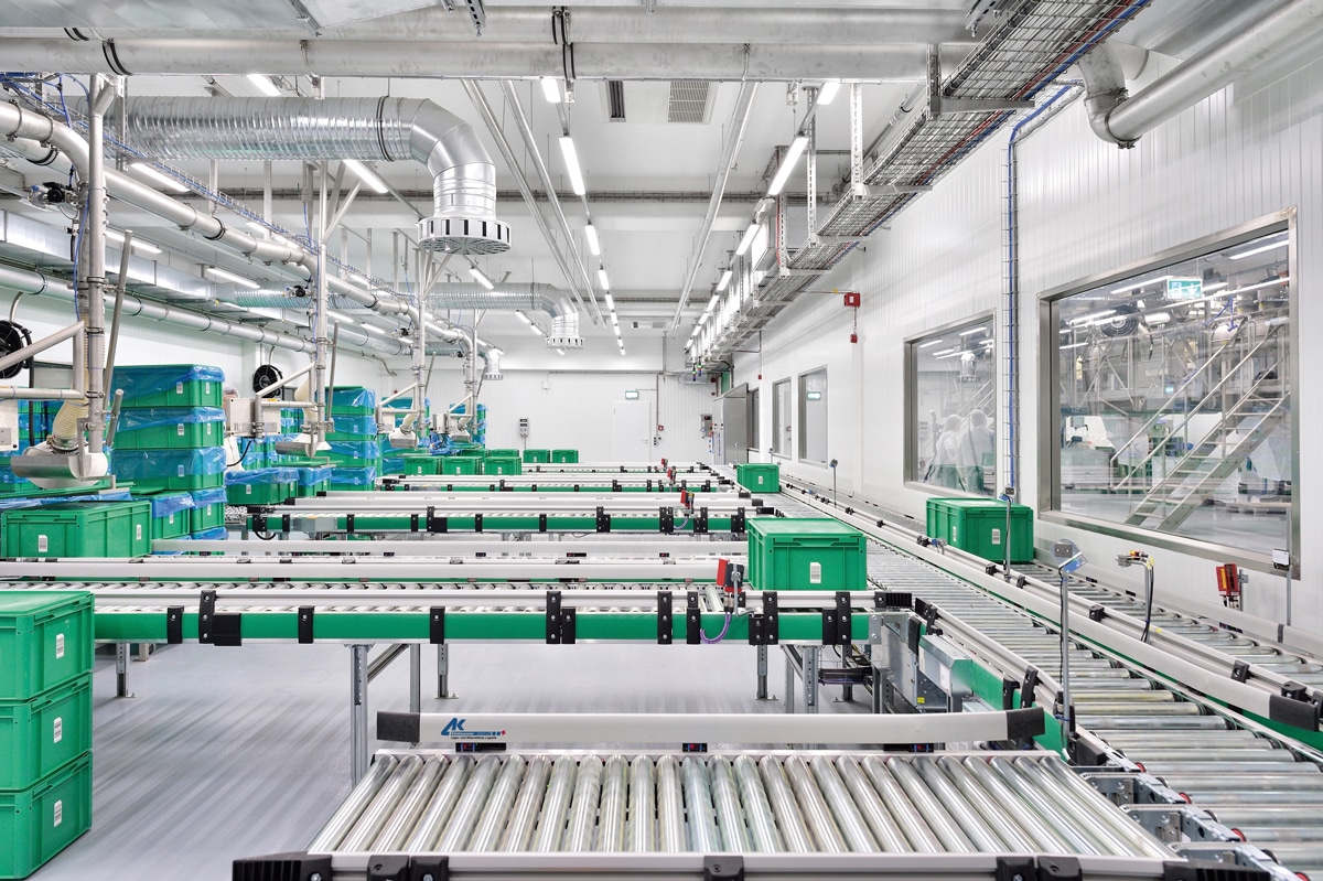 »Wir hatten klare Vorstellungen, wie das automatische Materialhandling und die Logistik im neuen Zentrum zusammenspielen sollte«, erklärt Dirk Balzer, Head of Manufacturing der Hügli Holding AG. »Unser Ziel ist es, die hohen Qualitätsansprüche unserer Kunden mit innovativen Produkten besser zu erfüllen als unsere Mitbewerber. Das Intralogistikkonzept optimiert die Materialflüsse zwischen allen Logistik- und Produktionsbereichen, mit zusätzlichem Puffer für Erweiterungen.« Im Mittelpunkt steht dabei stets eine hohe Flexibilität für zukünftige Arbeitsschritte und eventuelle Produktionserweiterungen.