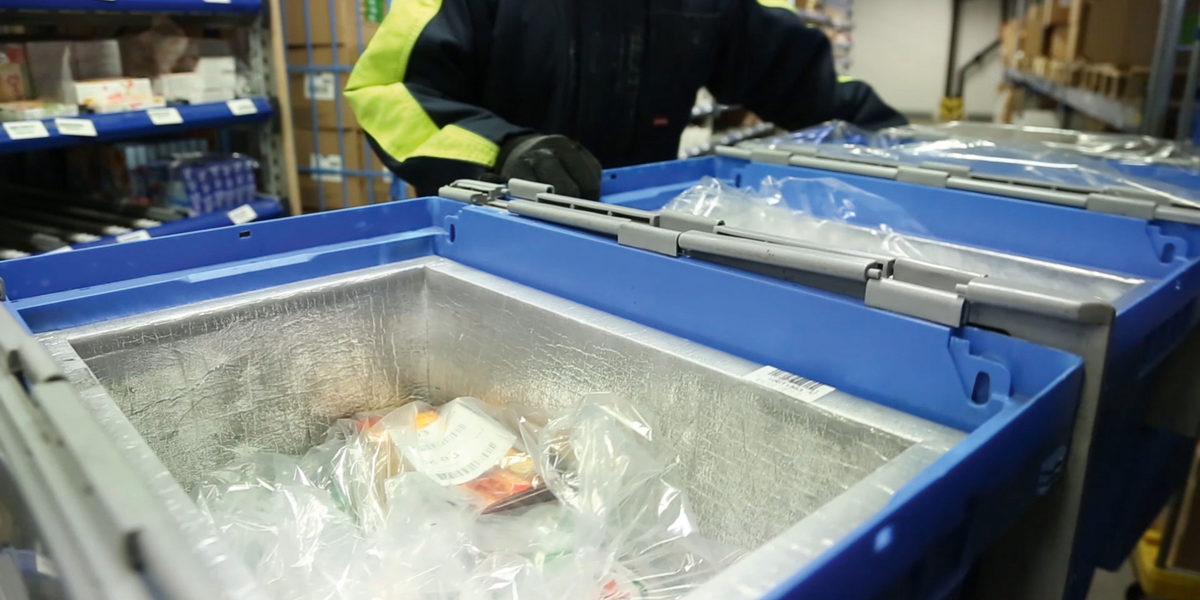Im Fall von Le Shop musste also eine Lösung gefunden werden, die die Sicherheit der Verpacker sowie der Akteure der Lieferdienste garantiert. Verbrennungs- oder Erstickungsgefahr musste ausgeschlossen werden. Die Lösung: die »Blaue Box«, eine Verpackung aus Hartplastik, 40 mal 60 Zentimeter groß, wasserdicht und mehrfach verwendbar. Die Box ist durch Styropor stark isoliert und wird über Trockeneisscheiben gekühlt, die als Abschlussschicht über die Produkte gelegt wird, eingepackt in Wellpappkartons. »Die Kombination aus Trockeneisscheiben und der ‘Blauen Box’ ermöglicht es uns, Produkte bei bis zu 28 °C Außentemperatur mindestens 24 Stunden lang den gesetzlichen Vorgaben entsprechend gefroren zu halten«, erklärt Hannes-Christian Möller, Market Unit Director Food & Pharma für Deutschland, Österreich und die Schweiz bei Air Liquide die Vorteile der Technologie.