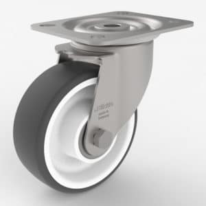 Das Rad der Serie Poth, das in der Rolle verbaut ist, besteht aus einem schweren Polyamidkörper und einem Laufbelag aus einem thermoplastischen Polyurethan. Es bietet laut Hersteller auch bei Kälte eine gute Performance, besitzt zudem einen geringen Roll- und Schwenkwiderstand, ist geräuscharm, bodenschonend und spurlos. Damit ist es für den Einsatz in der sensiblen Produktionsumgebung des Biotech-Herstellers prädestiniert.