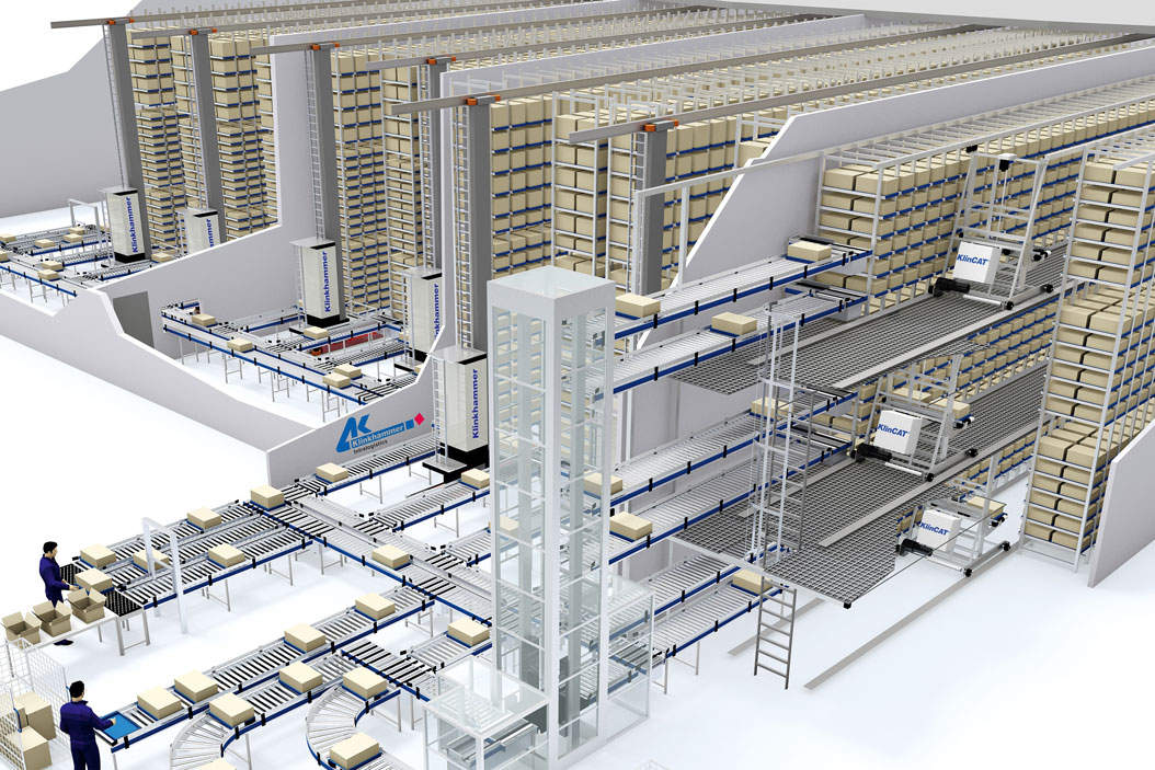 Zusätzlich dient das Shuttlelager als Auftragszusammenführungspuffer. Per Vorkommissionierung werden Aufträge für den Versand zwischengelagert, um diese zu einem späteren Zeitpunkt mit Waren aus anderen Lagerbereichen zusammenzuführen. Dies beschleunigt die Auftragsbearbeitung erheblich und entkoppelt die Prozesse. Die vorkommissionierten Auftragstablare werden in den unteren Ebenen des Klincats eingelagert. So sind ein Zusammenhalt der Tablare und möglichst kurze Wege bei der Auslagerung der Ware gewährleistet. Schnelldrehende A-Artikel, die nicht in den automatischen Lagern verwaltet werden, kommissionieren die Mitarbeiter mittels Pick-by-Voice direkt aus dem Palettenlager auf Rollcontainer. Anschließende werden die B-, C- und D-Artikel am Warenausgangsplatz des Automatiklagers mit der bereits kommissionierten Ware zusammengeführt. Da die Produkte ab diesem Zeitpunkt im temperaturgeführten Bereich bleiben, ist eine unterbrechungsfreie temperaturgeführte Lagerhaltung gewährleistet.