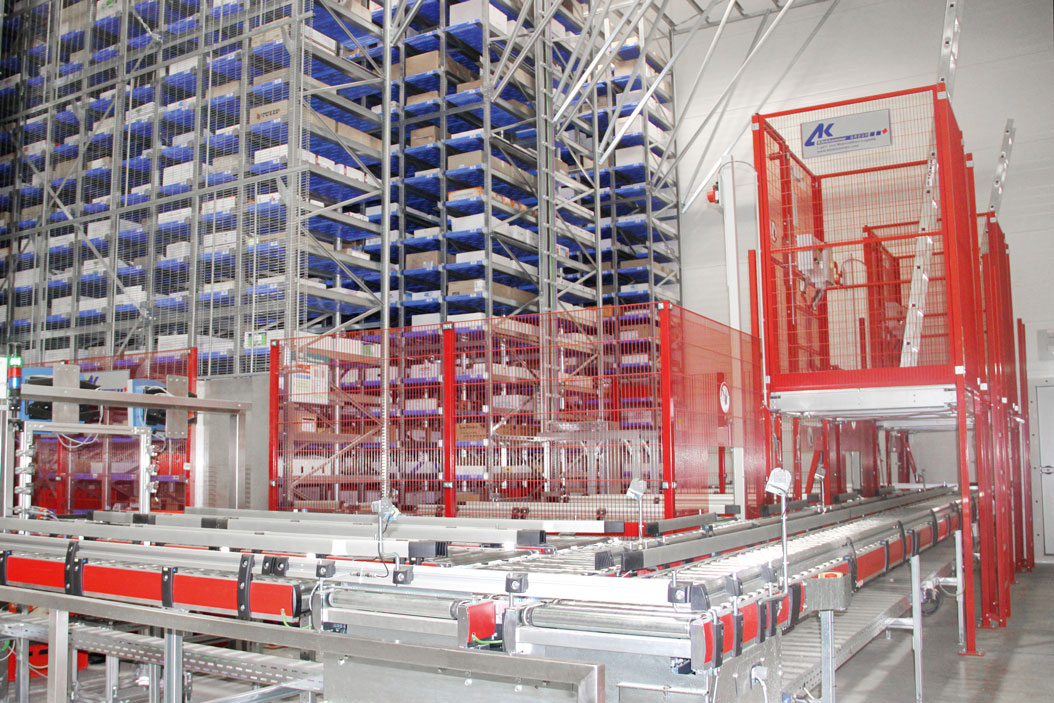 Das im August 2016 in Betrieb genommene zweigassige Tablarlager mit 9120 Stellplätzen ermöglicht eine nahezu vollautomatisierte Tiefkühllogistik. Durch die Erweiterung um 10 560 Tablarplätze wird sowohl die geplante Sortimentserweiterung als auch eine nochmalige Prozessoptimierung möglich. Ein automatisierter Fördertechnik-Loop sowie ein ergonomisch gestalteter Tiefkühl-Kommissionierarbeitsplatz mit zwei Bildschirmen sind an das Lager angeschlossen. Die neue Tiefkühl-Fördertechnik sowie ein weiterer Kommissionierplatz werden so mit der Bestandsanlage verbunden, dass möglichst kurze Wege anfallen und der Kälteverlust sowie der Wärme- und Feuchtigkeitseintrag ausgesprochen gering gehalten werden. Die Auslagerung erfolgt sequenziert, also exakt in der Reihenfolge, in der die Tiefkühlartikel pro Order kommissioniert und gepackt werden sollen. Chargen und Mindesthaltbarkeitsdaten werden dabei berücksichtigt.