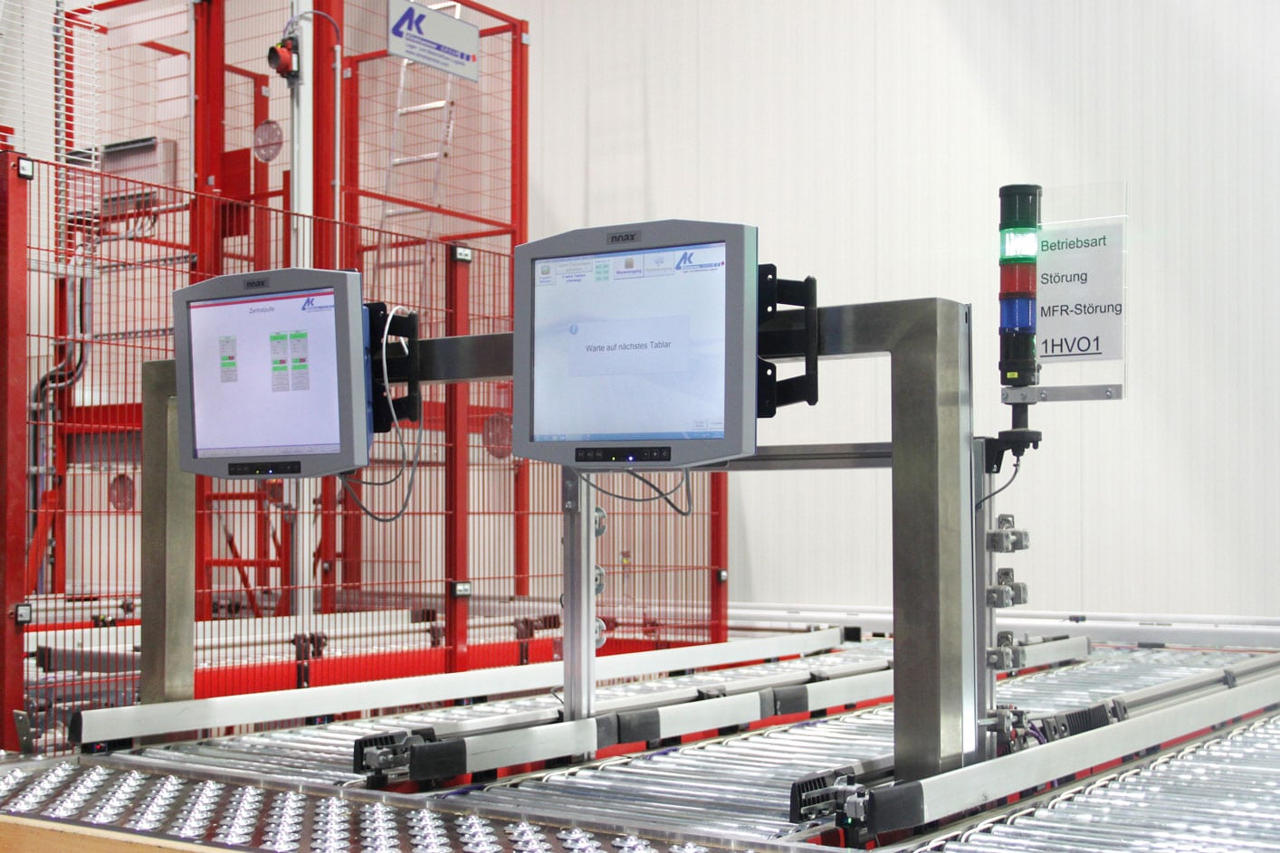 Das Trockenwarenlager ist als zweigassiges automatisches Kleinteilelager geplant und benötigt keine Klimatisierung. Um eine aufwändige Sprinklerung oder Inertisierung zu vermeiden, ist auch hier eine maximale Höhe der obersten Lagerebene von 7,60 Meter berücksichtigt. Der Vorzonen-Kreislauf des Frische- und Trockenwarenlagers verbindet die Ein- und Auslagerfördertechnik mit den Kommissionierplätzen in dem gekühlten Logistikbereich. Die Kommissionierplätze werden von zwei Zuführ-Förderstrecken bedient und verfügen über eine separate Abförderstrecke. Diese ermöglicht neben der Wareneinlagerung, die Rückführung von Anbruchware und die Einlagerung von gestapelten Leertablaren. An der Abförderstrecke wird eine Kontrollwiegung, Höhenkontrolle und Barcodeprüfung durchgeführt. Die Arbeitsplätze sind mit einem Allseiten-Rollentisch ausgestattet, der ein ergonomisches Handling der Tablare garantiert. Sie verfügen über Multi-Order-Arbeitstische für die Auftragsbehälter.