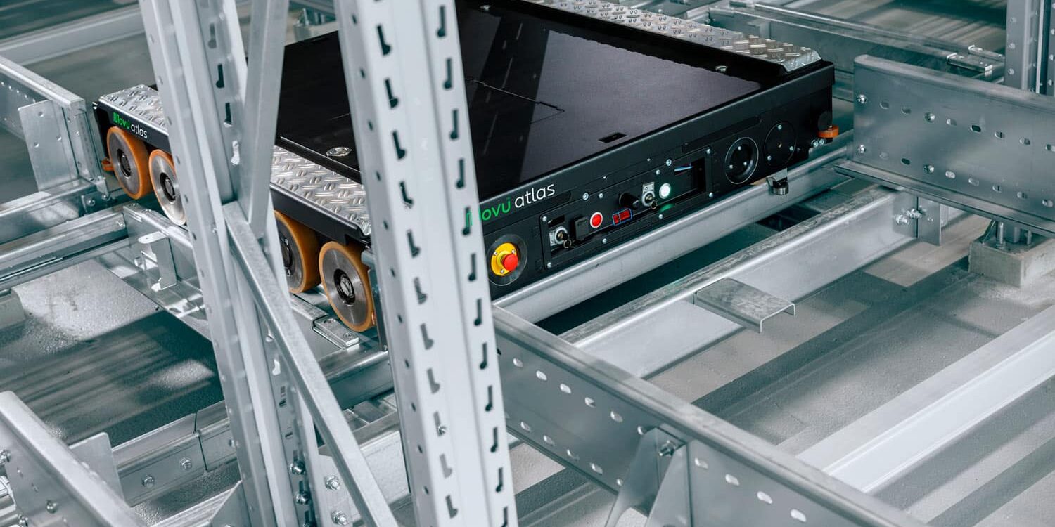 Das bei steigenden Leistungsanforderungen oder bei saisonalen Spitzen über zusätzliche Shuttles erweiterbare System verfügt über 5148 Stellplätze für Lasten bis 1100 Kilogramm – eine Lagerkapazität von weit über 5000 Tonnen. Im aktuellen Ausbauzustand werden derzeit bis zu 60 Palettenbewegungen pro Stunde durchgeführt. Durch mehrfachtiefe, hoch verdichtete Lagerung und lediglich einen Fahrgang ist das System deutlich kompakter als konventionelle Anlagen, was das Luftvolumen reduziert und den für die Kühlung benötigten Energieaufwand erhöht. »Je höher die Lagerdichte, desto kleiner der Footprint«, erinnert Stefan Pieters, CTO von Movu Robotics. Hinzu kommt die prinzipbedingt bessere Energieeffizienz von Shuttles, betont der Intralogistiker: »Mit gerade einmal 300 Kilogramm Eigengewicht – ein Regalbediengerät kommt leicht auf das Fünfzigfache – verbraucht das Atlas Shuttle bei gleichwertiger Last und derselben Pick-to-Storage-Bewegung bis zu 82 Prozent weniger Energie als ein RBG«.