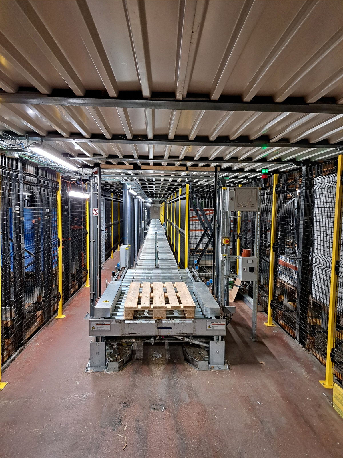 Eine 45,6 Meter lange Rollenfördererbahn wurde in der ersten Ebene zwischen den beiden Lagergassen des Frischelagers durch den Mittelblock gezogen. Sie transportiert Ladeeinheiten von der per manueller Aufgabe angebundenen Produktion ins Lager und in die neuen Versandhallen. Ebenfalls in Betrieb genommen wurden zwei neue, insgesamt 20 Meter lange seitliche Auslagerbahnen zwischen Kühllager und neuen Kommissionierhallen. Weitere Auslagerbahnen in die Versandzone sind geplant.