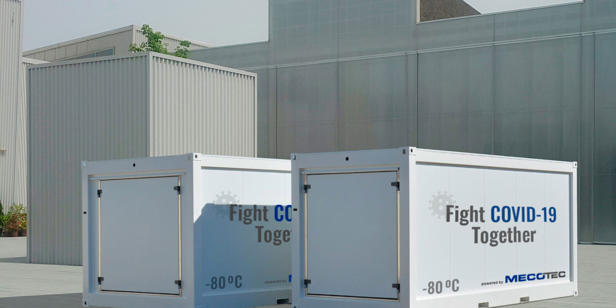 Die Mecotec Gruppe aus Sachsen-Anhalt hat hierfür eine Komplettlösung entwickelt: Direkt nach der Herstellung wird der Impfstoff vor Ort in einer Art Tiefstkühlhaus auf bis zu -70 °C eingefroren. Die Impfdosen werden in Transportverpackungen und Isolationsbehältern in den mobilen Kühlcontainer verladen und bei bis zu -80 °C zum Verteil-(Impf)-Zentrum transportiert. Dort können die Impfdosen einzeln entnommen werden, der Transportcontainer fungiert dann als Lager- und Verteilzentrum. Während des gesamten Prozesses können Temperatur und Standort des Containers zentral überwacht werden.