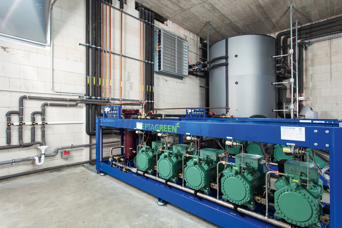 Beispiel einer transkritischen Kälteanlage als Alternative für von der F-Gase-Verordnung für das »Phase Out« vorgesehene Kältemittel.