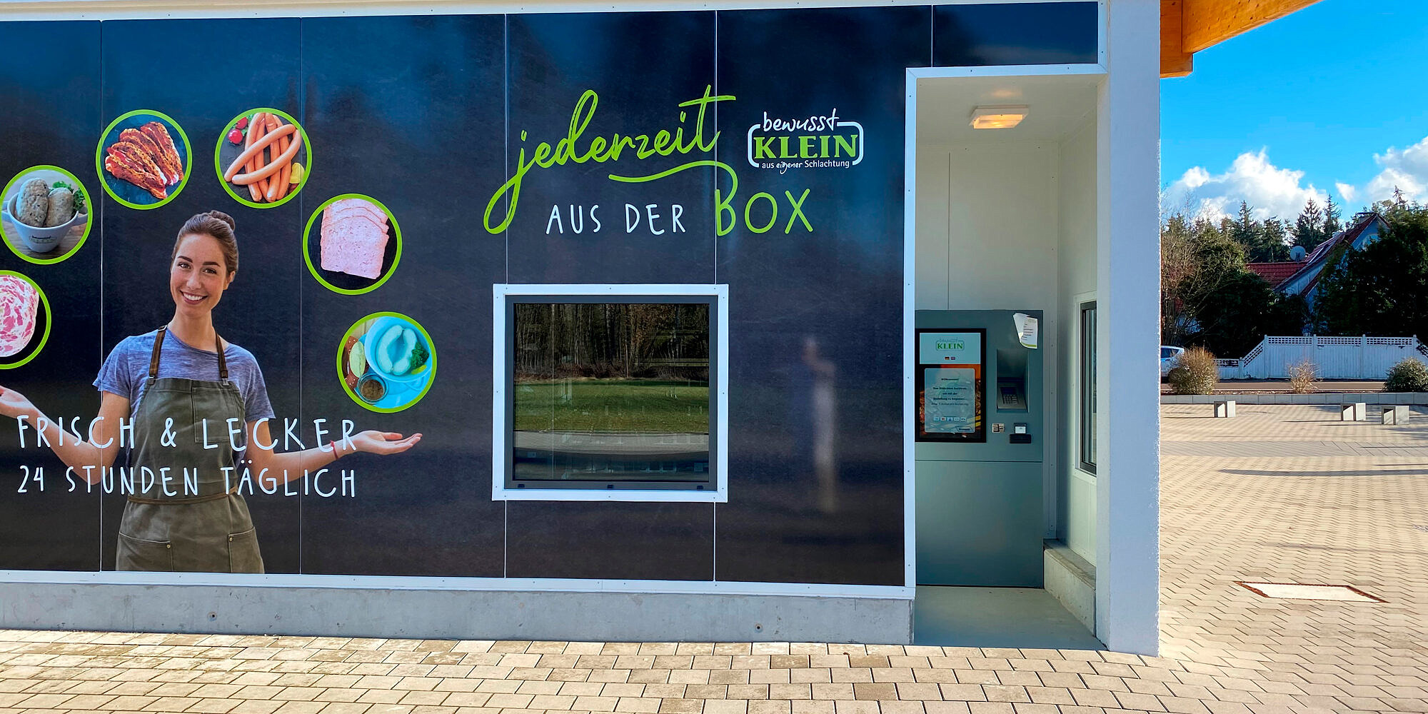 Von außen rund um die Uhr zugänglich ist die Verkaufs-Box der Metzgerei Klein in Straß bei Ulm.