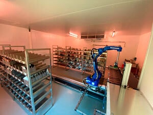 Seit Oktober letzten Jahres kaufen die Kunden der Traditionsmetzgerei Klein in Straß ihre Fleischwaren nicht nur im Laden, sondern auch bei »Roberta« ein – einem Automaten mit multifunktionaler Roboterlösung und direktem Blick in den Kühlraum. Nach ein paar Klicks auf dem Bestelldisplay mit integriertem Bezahlterminal setzt sich ein mannshoher Roboterarm im Kühlraum der Metzgerei in Bewegung, holt die gewünschten Waren aus den Regalen und bringt diese über ein Förderband zur Ausgabeluke. Aufschnitt, Fleisch, Würstchen, Beilagen oder sogar Suppeneinlagen können so schnell und bequem außerhalb der regulären Ladenöffnungszeiten eingekauft werden. Eine perfekte Alternative für Kunden, die ohne lange Warteschlangen, vollkommen kontaktlos und zu jeder Zeit ihre Lieblingsprodukte erwerben möchten.