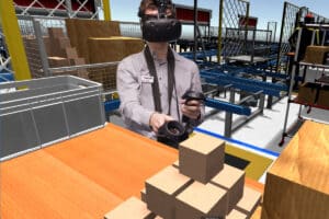 Für neue Kommissionierer bietet die virtuelle Animation der Arbeitsplätze aus der Vertriebs- und Planungsphase eine gelungene Trainingsplattform. Erst nach dem Training mit der VR-Brille geht es ins reale Lager. In diese Umgebung lassen sich die realen Bedienmasken des Lagerverwaltungssystems integrieren. Da nur ein kleiner Teil der Anlage nachgebildet wird, ist die Komplexität beherrschbar.