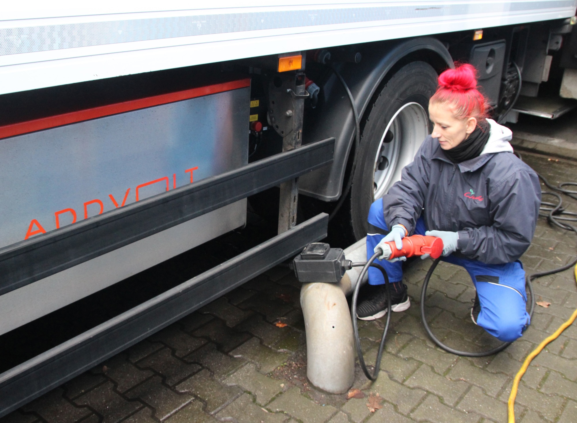 Fahrerin Inga S. ist leidenschaftliche LKW-Fahrerin und fährt bereits seit über acht Jahren für die Weihe GmbH in Berlin. Wenn sie ihre tägliche Tour um die Mittagszeit beendet, stellt sie den LKW an der Rampe ab und steckt das Kabel für den Power Pack einfach an der Steckdose ein. Nachmittags wird so bereits der Akku für den nächsten Tag aufgeladen. Über eine Zeitschaltung wird später, vor dem Beladen, der Laderaum vorgekühlt.