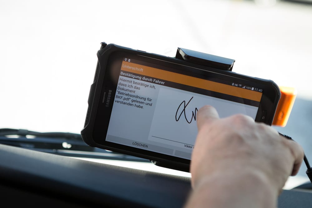Mit der Spedion App kann Transportdienstleister Pflaum Logistik eigenständig wichtige Dokumente an die Fahrzeuge verteilen. Die Fahrer können ihre Lesebestätigung auf dem Tablet auch per Unterschrift quittieren.