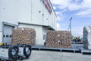 Ist der Frachtflieger entladen und sind die ULDs in den Automatiksystemen eingelagert, beginnt die eigentliche Arbeit im Cargoterminal. Waren für den Import werden für den Weitertransport per LKW auf Paletten umgepackt. Die ULDs fahren dazu auf spezielle Arbeitsstationen, die Workstations. Zum einfachen Be- und Entladen lassen sich diese Workstations absenken. Die Zielpaletten werden per Gabelstapler in einem manuellen Palettenlager zwischengelagert. Waren, die exportiert werden, vollziehen den Prozess in umgekehrter Reihenfolge. Sie werden anschließend ans Flugzeug transportiert. Der durchdachte Mix aus automatisierten und manuellen Systemen gewährleistet einen hohen Durchsatz bei maximaler Verfügbarkeit.