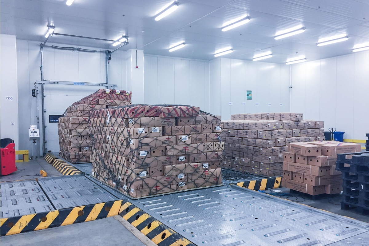 Die Kühlung der kompletten Hallenfläche von den Toren auf der Airside bis zu den LKW-Rampen auf der Landside gewährleistet die Einhaltung der Kühlkette.