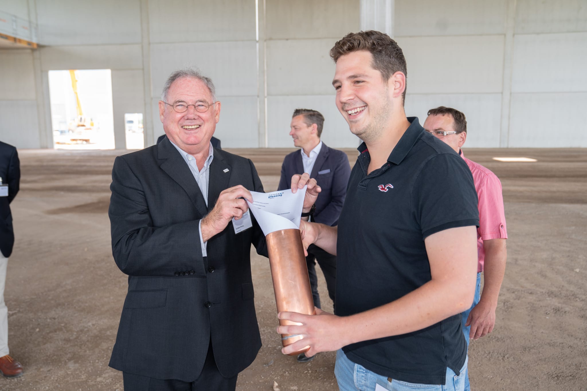 Am 21. Juni wurde der Grundstein für das Logistikzentrum »Multicube Rheinhessen« von Pfenning Logistics gelegt. Eine Tageszeitung, einige Geldmünzen, eine Urkunde: mit der Grundsteinlegung versenkte der geschäftsführende Gesellschafter Karl-Martin Pfenning auch die Zeitkapsel, ein verlötetes Blechgefäß, in den gemauerten Sockel des Logistik-Komplexes. Im Gewerbegebiet Monsheim-Ost bei Worms entsteht seit März eines der laut Pfenning Logistics modernsten Logistikzentren Europas. Bis zum ersten Quartal 2019 errichtet das mittelständische Logistikunternehmen hier den zweiten Multicube. Der Name ist Programm für ein modulares Immobilienkonzept, das den Bau zu einem Multi-User-Logistikzentrum für seine Nutzer macht. Denn die Immobilie, die über eine Gesamtlagerfläche von 55 000 Quadratmetern verfügt, soll Kunden aufgrund der modularen Bauweise ermöglichen, vollkommen unterschiedliche Industrie- und Handelsprodukte unter einem Dach zu bündeln, zu verarbeiten, zu veredeln und auf kürzestem Wege in den Markt zu bringen. Lebensmittel und Pharmaprodukte, Konsum- und Industriegüter oder temperaturgeführte Ware. Vorbild für das Konzept ist der mehrfach von Immobilienexperten ausgezeichnete Multicube Rhein-Neckar«, den Pfenning am Stammsitz in Heddesheim bereits 2013 in Betrieb genommen hat. »Diese Grundsteinlegung ist ein weiterer Meilenstein im Geschäftsfeld der Kontraktlogistik«, sagte Firmenchef Karl-Martin Pfenning in seiner Ansprache mit Blick auf die Dimensionen, die das Projekt für die Region, die Verbandsgemeinde Monsheim, aber auch für die Geschichte von Pfenning Logistics als mittelständischer Logistiker besitze.