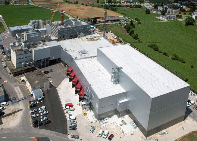 Für die Lagerung von Halb- und Fertigwaren, von Zusatzstoffen und Verpackungsmaterial benötigte das Unternehmen am Standort Sulgen zusätzliche Lagerflächen. Um die Produktionslinien an das neue Lagergebäude anzubinden, wurde die Gilgen Logistics 2013 für eine richtungsgetrennte Palettenförderanlage mit Verbindungstunnel beauftragt. Weiter beinhaltete der Auftrag fünf Aufzugsanlagen für Paletten, einen Palettenstretcher, das Lagerverwaltungssystem, sowie die LKW-Verladestationen und einer Außen-Scherenhebebühne.