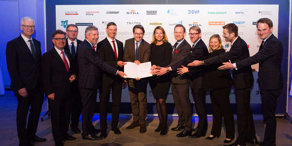Offenbar ein Grund zur Freude: Bundesverkehrsminister Scheuer den erhält Fünf-Punkte-Plan gegen Logistikengpässe und Fahrermangel von einer breiten Verbände-Allianz überreicht.