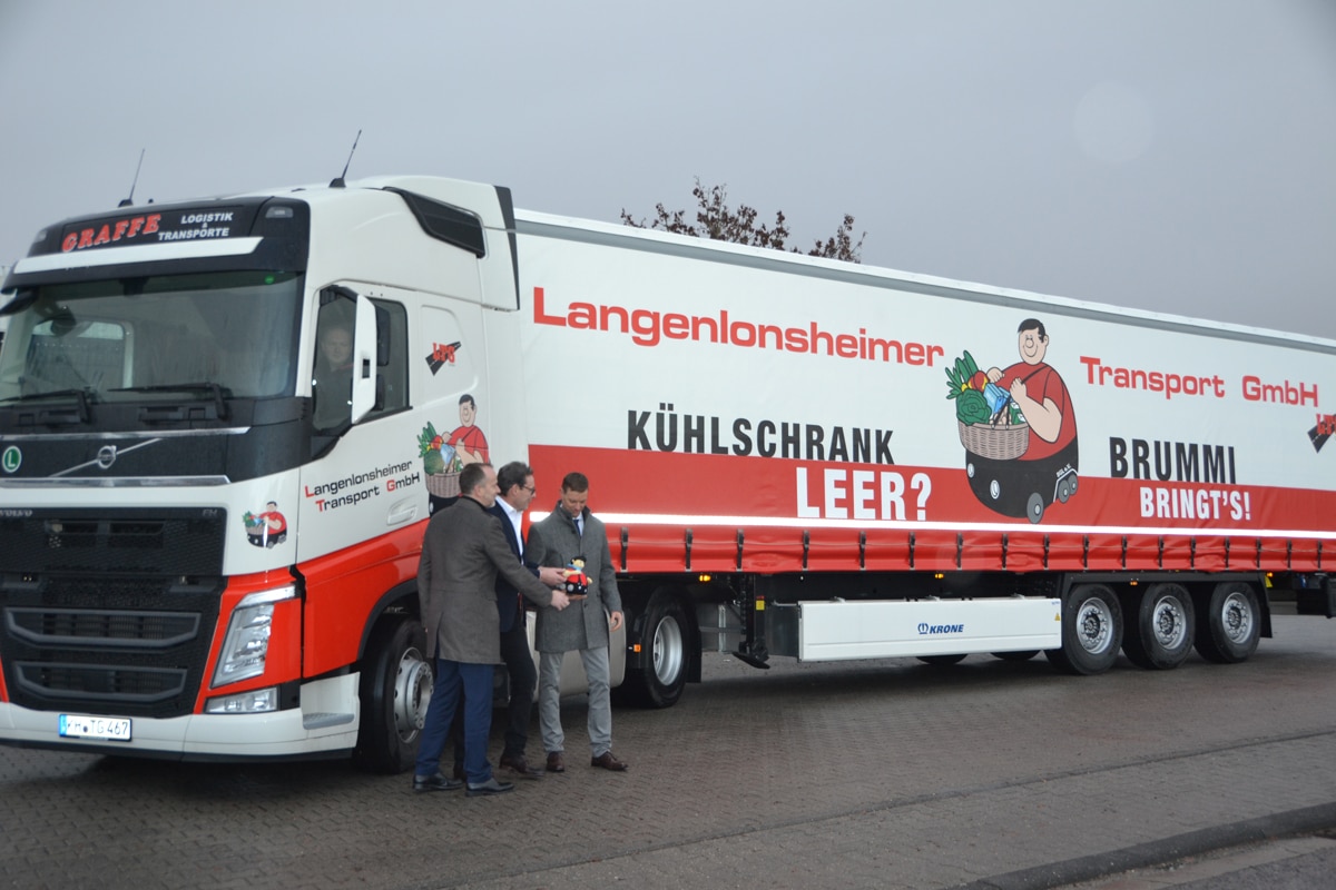 In einer auch für andere Unternehmen und Verbände offenstehenden Initiative wollen die emsländische Krone Nutzfahrzeug Gruppe und der Bundesverband Güterkraftverkehr Logistik und Entsorgung (BGL) e. V. zur Imageverbesserung der Logistikbranche sowie zu einem besseren Ansehen der Berufskraftfahrer beitragen. Als Startkapital für den noch zu gründenden Interessenverein hatte Krone einen Sattelauflieger mit dem Brummi-Logo des BGL gespendet, Diesen hat die Langenlonsheimer Transport GmbH für die stolze Summe von 26 500 Euro ersteigert. Im Dezember wurde der Brummi-Trailer von Krone-Geschäftsführer Dr. Frank Albers im Beisein von BGL-Hauptgeschäftsführer Prof. Dr. Dirk Engelhardt an die Langenlonsheimer Transport GmbH übergeben. »Wir freuen uns natürlich sehr, dass wir mit der L.T.G. einen weiteren starken Partner für diese Initiative gewinnen konnten. Überhaupt ist das positive Feedback, das wir auf dieses Engagement von unseren Kunden erhalten, überwältigend«, berichtete Albers. »Daher haben wir beschlossen, weitere 50 Profi Liner mit Brummi-Beschriftung zu bauen und im Markt anzubieten. So möchten wir zusammen mit allen Beteiligten das Image des Berufskraftfahrers weiter nachhaltig stärken.«