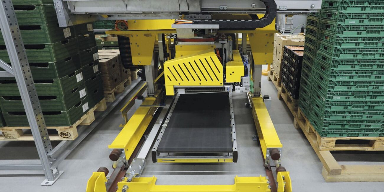 Der neue intelligent gesteuerte Stöcklin Casepicker Depalettierer ist dabei ein wesentlicher Bestandteil und Herzstück des Systems. Die neuartige Spezialgreiferlösung mit Saugleiste, Greifer und Unterfahrplatte sorgt für eine schonende und sichere Entnahme der Gebinde. Die Artikelgebinde werden dabei ladungsschonend getragen, sodass sie nicht hart auf dem Förderband auftreffen. Besonders wichtig bei empfindlichem Obst oder Gemüse, das bei einem zu harten, schnellen Aufprall qualitätsmindernd gedrückt werden könnte. Außerdem ermöglicht diese innovative Spezialgreiferlösung laut Unternehmen zum ersten Mal, dass unterschiedlichste Mehrweg- und Einweggebinde unmittelbar hintereinander gepickt werden können.