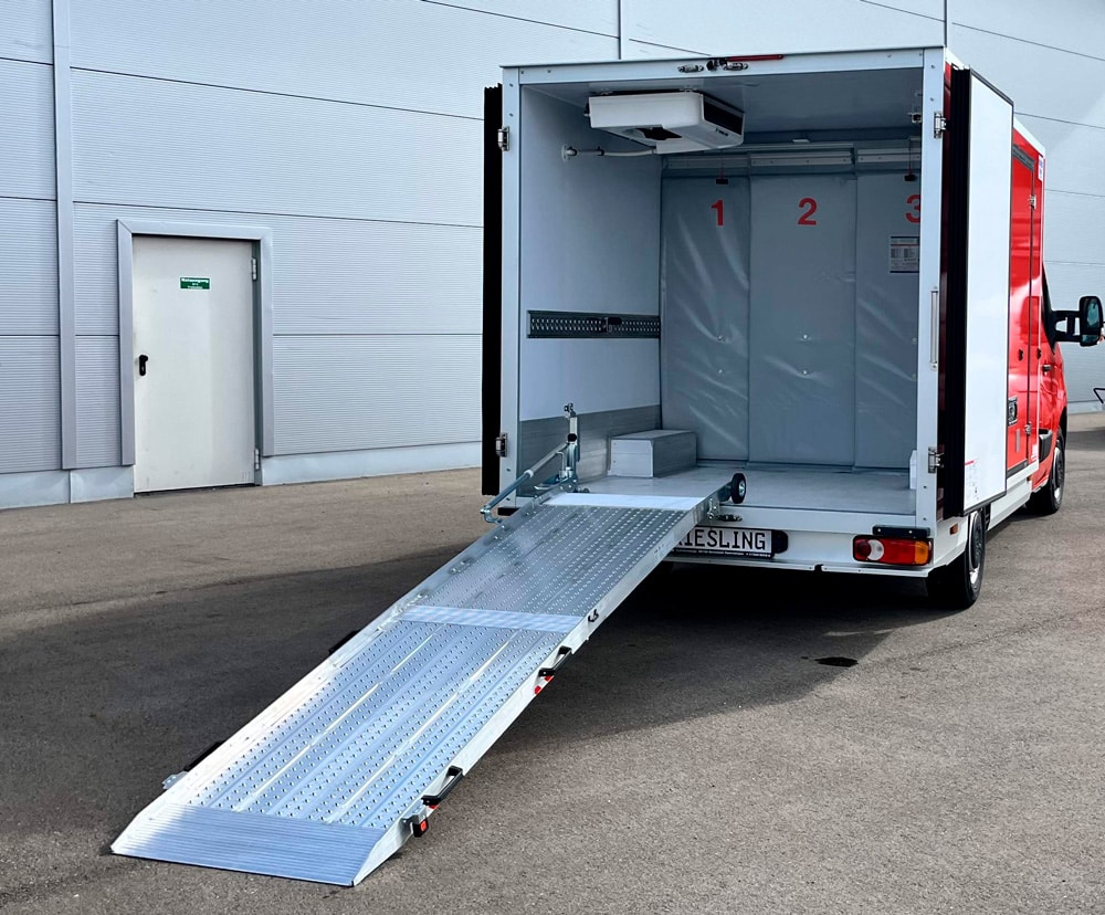 Mit dem neuen Kühltransporter Eco Speeder hat Kiesling einen leichten, kompakten und wirtschaftlichen Kühltransporter vorgestellt. Als besondere Option bietet er eine ausklappbare Rampe, die die Ladebordwand ersetzen kann.