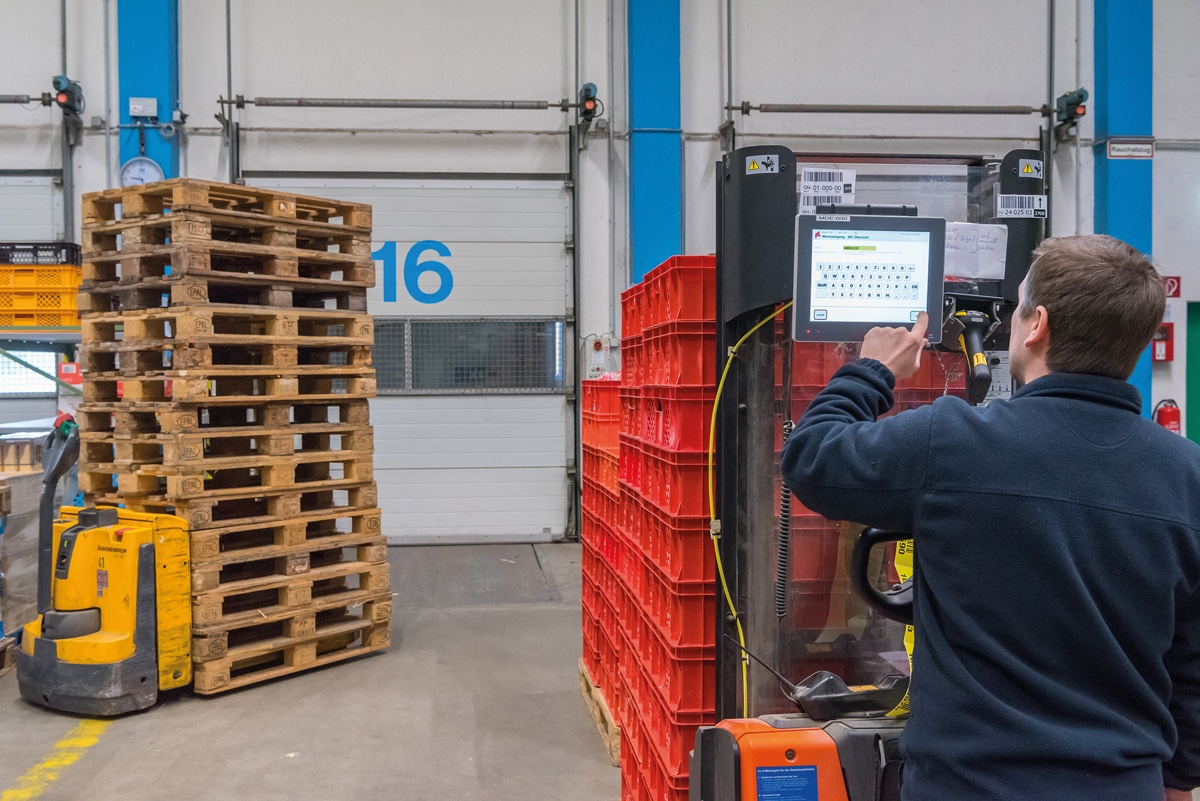 Die Stapler, die die Transporte im Haupt- sowie im TK-Lager übernehmen, sind im Zuge des Projekts mit Bordcomputern ausgerüstet worden.