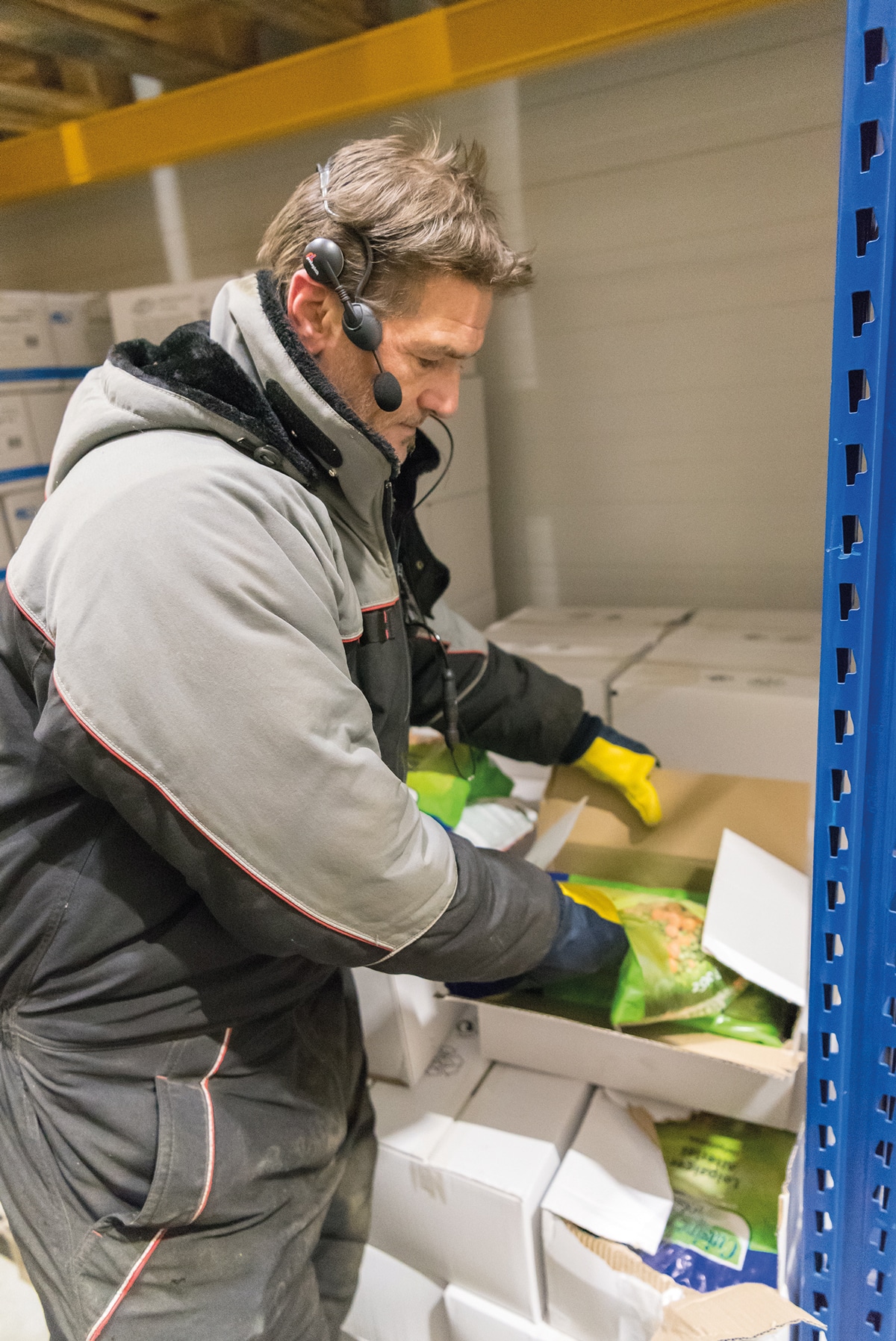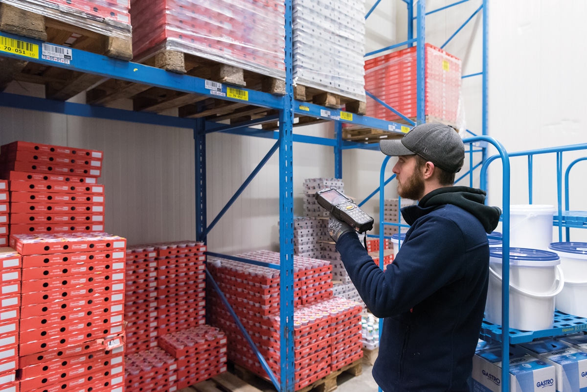 Sukzessive konnte jeweils der Go-Live im Trocken- und Frischelager sowie in dem an einem separaten Standort eingerichteten Tiefkühllager abgeschlossen werden. Seither erfolgt die Auftragsabwicklung durchweg beleglos. Statt aufwändig mit Picklisten hantieren zu müssen, werden die Mitarbeiter durch mobile Hardware von Prologistik unterstützt. Im Wareneingang dienen Terminals der Vereinnahmung. Mit Bordcomputern sind zudem Stapler ausgerüstet worden, die die Transporte im Haupt- sowie im TK-Lager übernehmen. Ferner befinden sich im Bereich der Kommissionierung robuste und handlich konzipierte Datenerfassungsgeräte im Einsatz. Werker, die unter wortwörtlich zu nehmenden eiskalten Umgebungsbedingungen im TK-Lager arbeiten, werden hingegen über Voice-Clients, also sprachgestützt, geführt. Dank dieses Dialogsystems können sie beide Hände für Ihre Arbeit nutzen, sodass diese Abläufe deutlich schneller vonstattengehen, Fehlgriffe praktisch ausgeschlossen sind und die Produktivität insgesamt gesteigert werden kann.