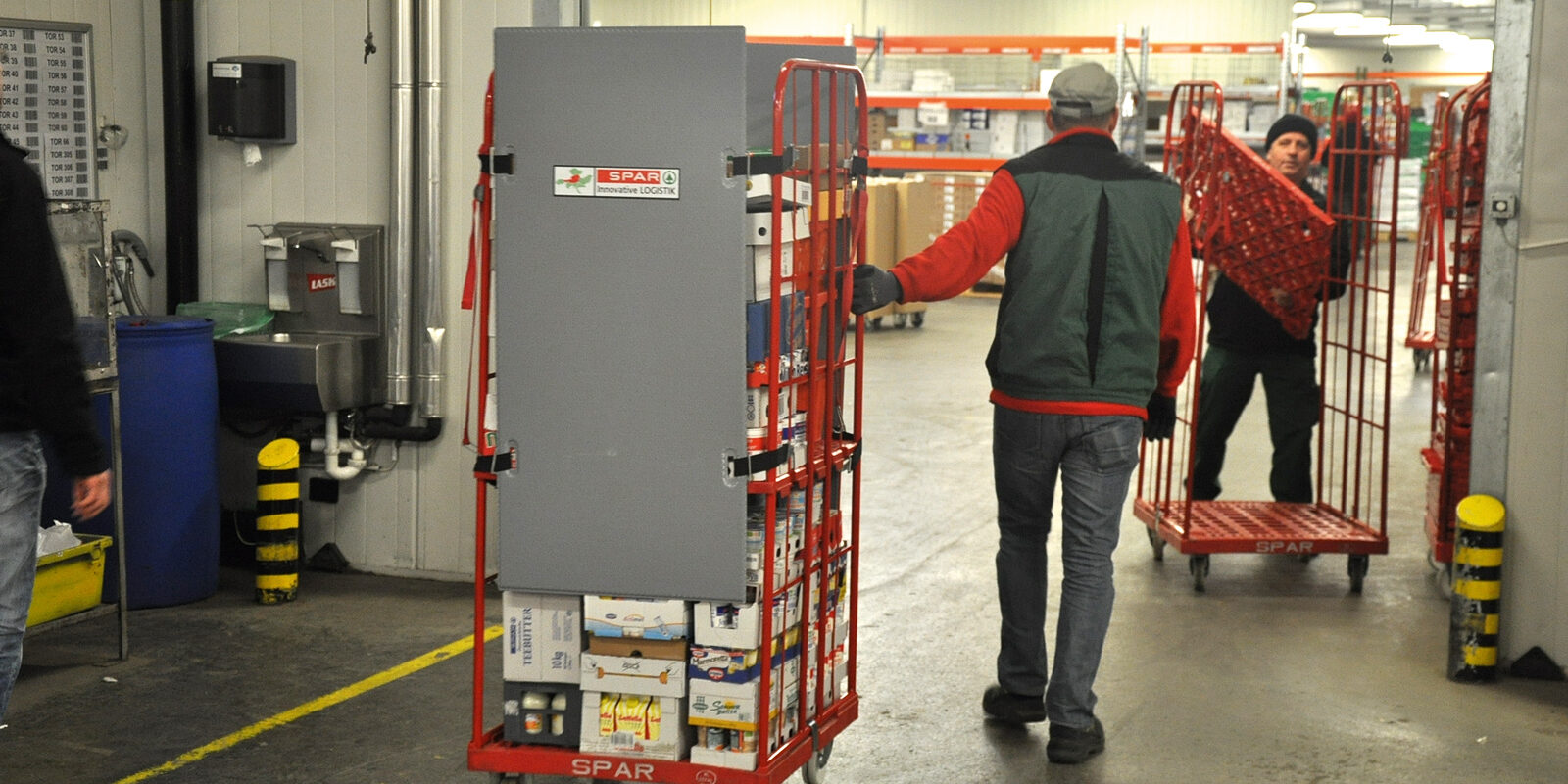 Statt Stretchfolie benutzt das österreichische Handelsunternehmen Spar wo notwendig wiederverwendbare Kunststoffplatten an den Rollbehältern und spart mit dieser umweltfreundlichen Transportsicherung namens Roll-Safe im Jahr 70 000 Euro.
