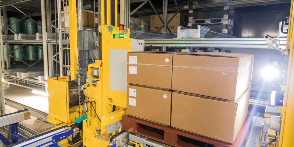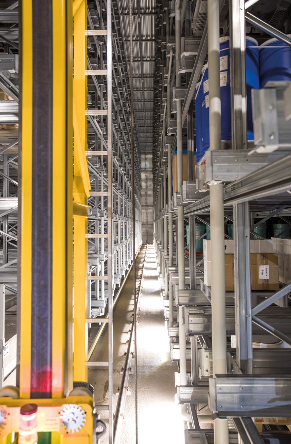 Erschlossen wird der neue Hochregallagerkomplex über zwei automatische Paletten-Aufzüge mit einer Einbauhöhe von 26 Meter ab Erdgeschoss.