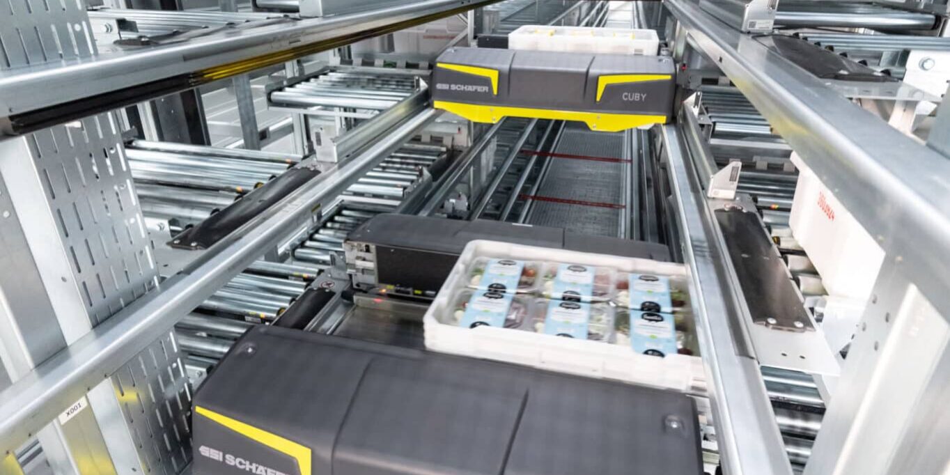 Das skalierbare Cuby Shuttle-System von SSI Schäfer kommt bei Fresh Servant zum Einsatz, um höchste Verfügbarkeit und Prozesseffizienz zu gewährleisten.