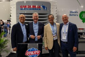 Schmitz Cargobull und der US-Trailer-Hersteller Utility Trailer Manufacturer Company LLC haben ein Joint Venture gegründet – die Cargobull North America (CBNA). Im ersten Schritt haben die Partner basierend auf der Schmitz Cargobull-Kältemaschine S.CU zwei Transportkältemaschinen TRUs entwickelt. Die 625 Hybrid und die 655 MT (Multitemp) Hybrid Kältemaschinen sind mit einem Common-Rail-Diesel-Motor und einem hybriden Antrieb ausgestattet und erfüllen nach Angaben der Partner die strengen Emissionsanforderungen von Kalifornien. In einem nächsten Schritt sollen vollelektrische, Tüv-homologierte Modelle mit batteriebetriebener Rekuperationsachse folgen, wie sie bereits in Europa erfolgreich im Einsatz sind. Die Einheiten sind mit dem Trailerconnect-Telematiksystem von Schmitz Cargobull ausgestattet, die exklusiv in den Kühlaufliegern von Utility Trailer installiert werden. Premiere haben sowohl das neue Unternehmen als auch die zwei Transportkältemaschinen für den nordamerikanischen Markt im Rahmen der „IFDA Distribution Solutions 2023“ Mitte September in Fort Worth, Texas gefeiert. Der große amerikanische Einzelhändler Kroger wird laut Schmitz Cargobull der erste Kunde von CBNA sein, der mit Kühlaufliegern der Serie 3000R von Utility Trailer und den Transportkältemaschinen 625 Hybrid und 655 MT fährt. „Wir freuen uns, mit Utility Trailer, dem US-Marktführer bei Fahrzeugen im temperaturgeführten Transport, zusammenzuarbeiten“, erklärte Andreas Schmitz, Vorstandsvorsitzender der Schmitz Cargobull AG. „Die gleichen Transportkältemaschinen werden später auch auf anderen Märkten erhältlich sein, darunter Deutschland und Europa“, kündigte er an.