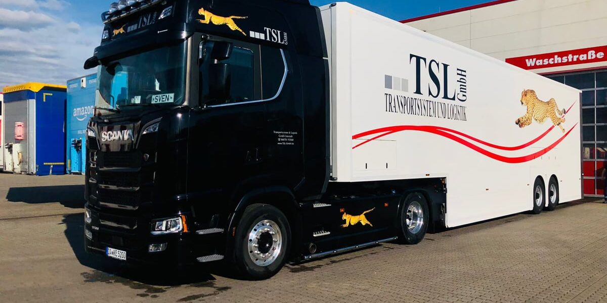 TSL wurde 1994 als Unternehmen mit drei Mitarbeitern gegründet. »Heute haben wir 107 Mitarbeiter, 62 Zugmaschinen und dreizehn Doppelstockauflieger, von denen die meisten von Van Eck geliefert wurden«, sagt Timmsen. »Wir kennen Van Eck seit fast zehn Jahren, und der älteste Van Eck-Doppelstockauflieger in unserem Fuhrpark ist bereits seit sechs Jahren in Betrieb. Er wird also sicher noch viel länger halten. Die Konstruktion ist besonders robust, wir haben keine Probleme mit ihr. Das liegt auch daran, dass wir die Wartung rechtzeitig selbst durchführen.« Timmsen erklärt, dass TSL eine eigene Werkstatt hat. »Schön zentral in Deutschland, das ist von Vorteil. Die Zusammenarbeit mit Van Eck im Bereich der Hydraulik und Elektronik ist vorbildlich. Der Service von Van Eck ist ein zusätzlicher Grund, Kunde bei diesem Lieferanten zu bleiben!«