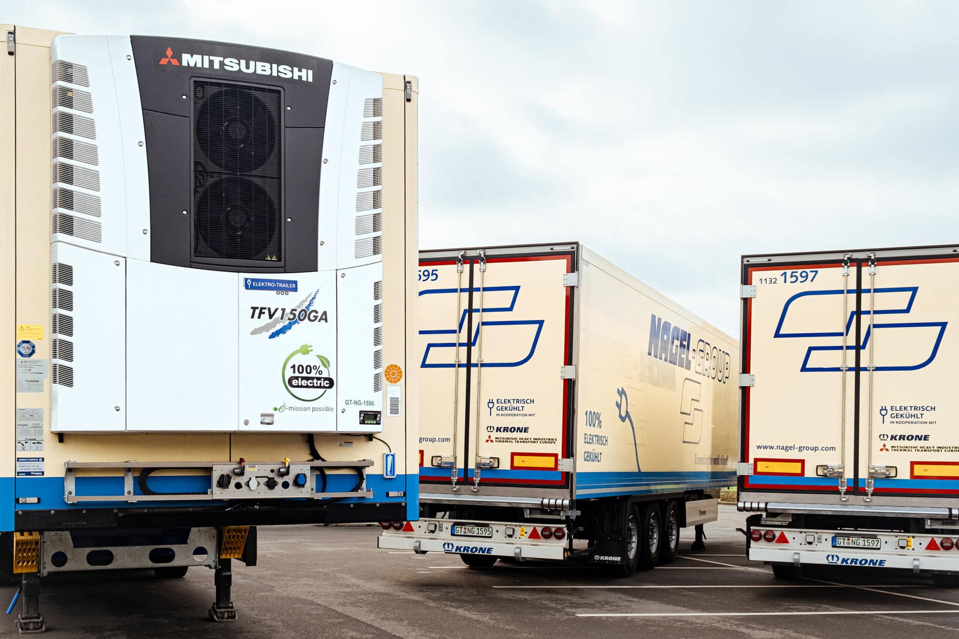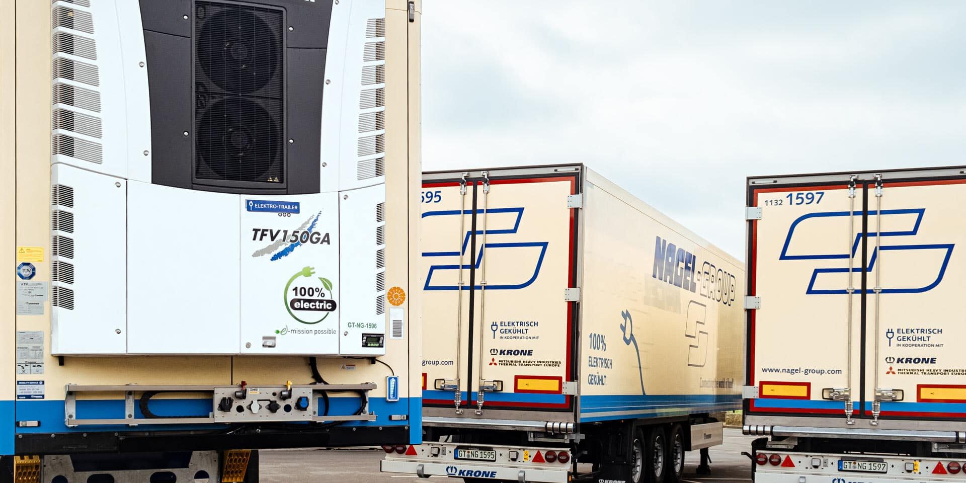 Die Nagel-Group hat vier neue elektrische Kühlauflieger in Betrieb genommen. Die Trailer mit elektrisch betriebener Kältemaschine ermöglichen einen emissionsfreien und geräuscharmen Kühlbetrieb für Lebensmitteltransporte im Frische- und Tiefkühlbereich. Die E-Trailer werden an den Standorten Hamburg, Reichenbach bei und Traiskirchen bei Wien zum Einsatz kommen. »Die Inbetriebnahme der neuen elektrischen Kühlauflieger ist ein weiterer Schritt in unserem Bestreben, umweltfreundliche und zukunftsorientierte Logistiklösungen anzubieten«, kommentierte Jens Kleiner, Chief Operating Officer bei der Nagel-Group. »In enger Zusammenarbeit mit Krone und Mitsubishi bringen wir diese im Bereich der aktiven Kühlung innovative Technologie auf die Straße.«
