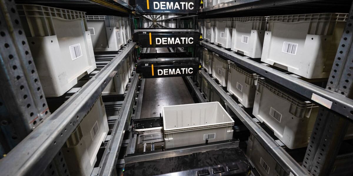 Eine der Technologien, die Dematic als Teil der automatisierten Lösung bereitgestellt hat, ist das Dematic Multishuttle-System. Die Produkte werden in Behältern platziert, die von Shuttles automatisch und hochverdichtet in Regalen gelagert werden. Die Dematic Multishuttles transportieren die Behälter automatisch zwischen den Lagerplätzen und den Entnahmestationen, sodass die Bediener keine Wege mehr zurücklegen müssen und nicht das falsche Produkt entnehmen können. Diese Hochregale nutzen den Platz vom Boden bis zur Decke und maximieren so die Lagerdichte.
