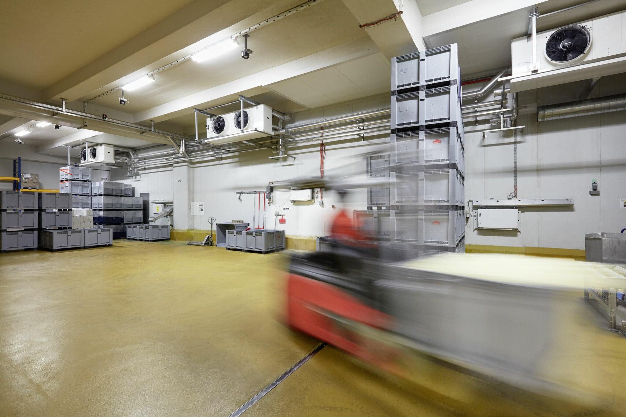 Schon früh wurde das Konzept einer gemeinsamen, zentralen Kälteversorgung mit Ammoniak als Kältemittel geprüft und weiterverfolgt, dieses bietet zahlreiche Vorteile gegenüber dezentralen Installationen: